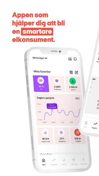 Do głównych funkcji GodEl koll på din el należy możliwość przeglądania zużycia i kosztów na godzinę, dzień, miesiąc i rok. Możesz również uzyskać prognozę kosztów miesięcznych i ceny spot. Aplikacja umożliwia śledzenie faktur i oferuje wskazówki dotyczące oszczędzania pieniędzy, oparte na konkretnej sytuacji domowego gospodarstwa. Pozwala również porównać zużycie energii z poprzednimi dniami i miesiącami.